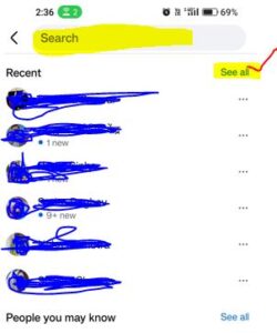 Click the small clock icon or “See recent searches” that appears below the bar.